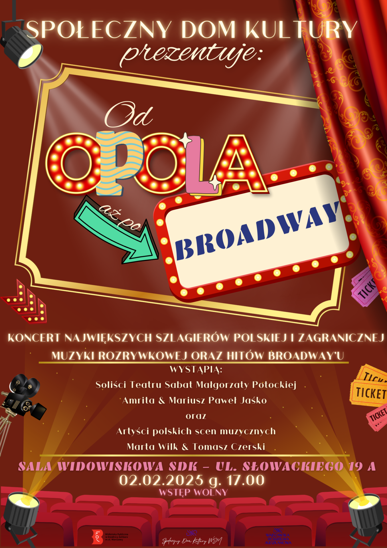 Koncert największych szlagierów polskiej i zagranicznej muzyki rozrywkowej oraz hitów Broadway’u. Usłyszymy wielkie przeboje prezentowane na Krajowym Festiwalu Polskiej Piosenki w Opolu wykonywane m.inn. przez Stana Borysa, Krzysztofa Krawczyka, Marylę Rodowicz, Czerwone Gitary, Annę Jantar, zespół 2 + 1 czy Zbigniewa Wodeckiego. Nie zabraknie repertuaru międzynarodowych artystów jak: Karel Gott, Joe Dassin, Elvis Presley, Doris Day, Serge Lama, Edith Piaf… Finał koncertu wieńczą utwory ze światowej sławy musicali jak m.inn. : „Taniec Wampirów”, „Romeo & Julia”,”Skrzypek na dachu”, „Nędznicy”, „Victor/Victoria”, „New York, New York”, „Cabaret”…oraz z repertuaru niezapomnianych gwiazd Broadway’u jak Frank Sinatra, Barbra Streisand, Liza Minnelli.