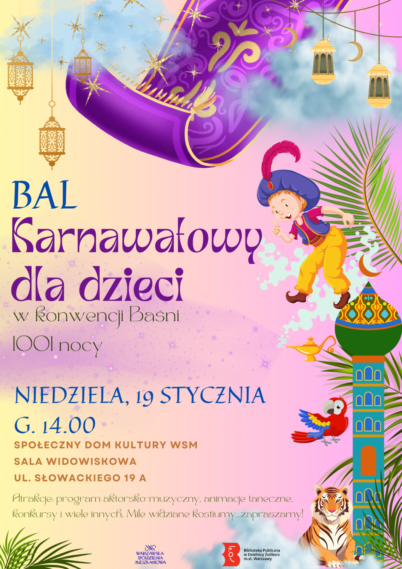 19.01.2025 o godz. 14.00 Zapraszamy na Bal Karnawałowy dla Dzieci. Zapowiada się wspaniała zabawa taneczna i wiele atrakcji. Do zobaczenia w SDK WSM.